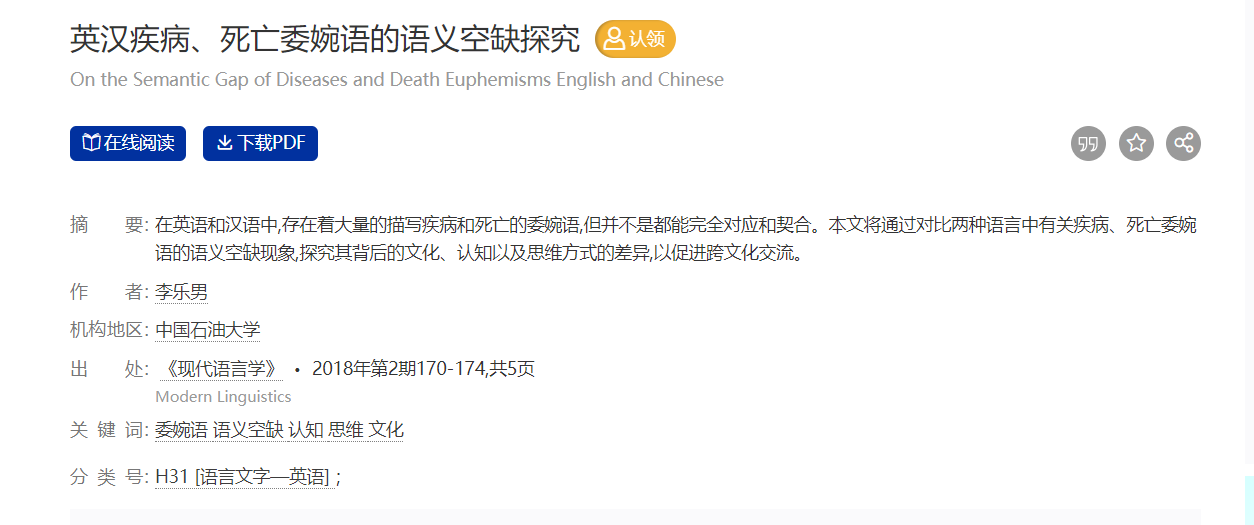 20.李乐男,英汉疾病、死亡委婉语的语义空缺探究