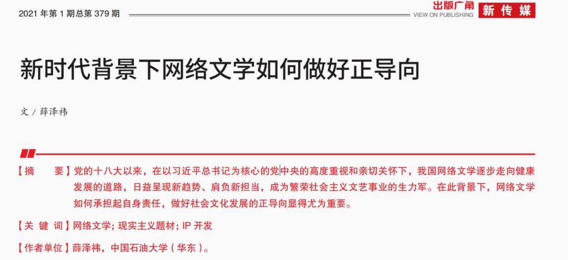 1.薛泽祎,新时代背景下网络文学如何做好正导向