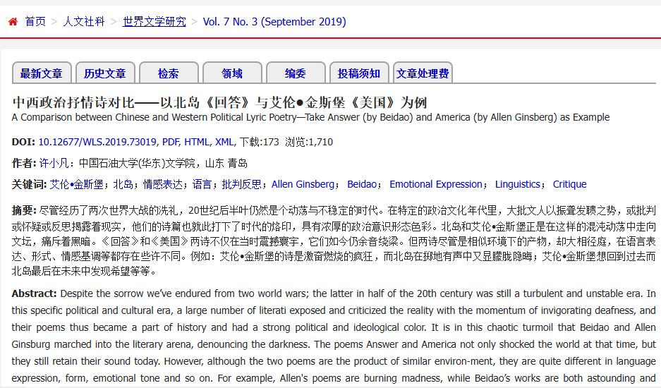 12.许小凡,中西政治抒情诗对比—以北岛回答和艾伦金斯堡美国为例