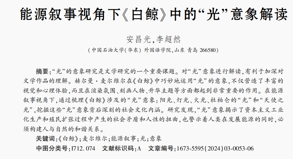 2.安昌光、李超然,能源叙事视角下《白鲸》中的“光”意象解读