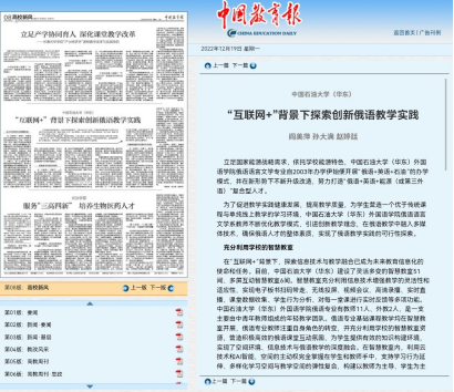 4. 《中国教育报》:“互联网+”背景下探索创新俄语教学实践
