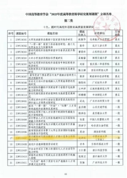 4. 中国高等教育学会教改项目:“一带一路”沿线国家国际化素养类通识课程体系的探索与实践(范靓) | 5. 中国高等教育学会教改项目:“一体两翼一引领”小语种素质教育通识课程思政体系的构建与实践(范靓) |