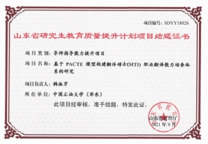 11. 山东省研究生教育质量提升计划项目:基于PACTE模型构建翻译硕士(MTI)职业翻译能力培养体系的研究(韩淑芹)
