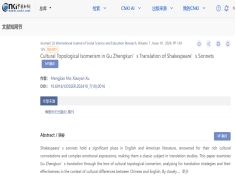 33. Cultural Topological Isomerism in Gu Zhengkun’s Translation of Shakespeare’s Sonnets. International Journal of Social Science and Education Research, 2024,7(10)