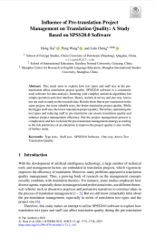 13. Influence of Pre-translation Project Management on Translation Quality: A Study Based on SPSS20.0 Software[C]. 2023 4th International Conference on Education, Knowledge and Information Management (ICKIM 2023)(EI), 2023.1 | |
