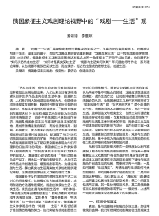 | 22. 俄国象征主义戏剧理论视野中的“戏剧——生活”观[J]. 四川戏剧, 2021(5))[北大核心]