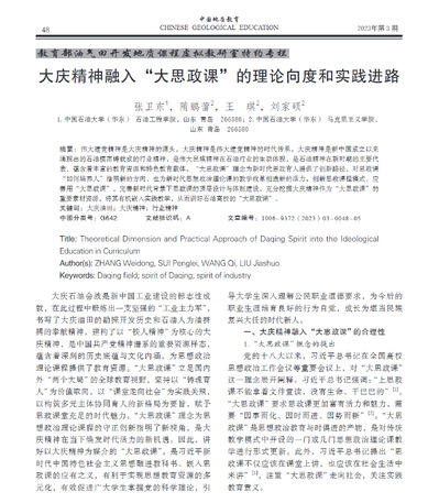 9 | 大庆精神融入“大思政课”的理论向度和实践进路 |