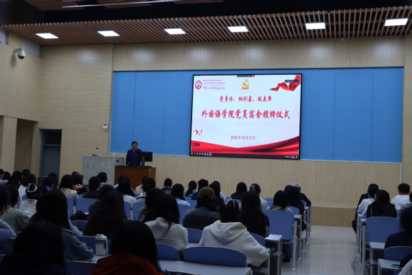 仪式首先由员工党员代表发言,2023级英语专业本科生王博文从以“严”立己、以“暖”聚力、以“行”示范等三个方面表达了做好党员宿舍表率的决心,体现了员工党员对初心使命的自觉践行。2023级英语笔译专业硕士研究生郭涵涵从支部建设和党员宿舍管理的实际出发,发出以“恒心”扎根学业服务、以“用心”聚焦日常需求、以“真心”投身志愿实践的倡议,展现了高年级党员以身作则、以党建促学风的责任担当。
