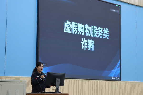 胡铭警长以“世界很大,小心有诈”为主题的进行了宣讲教育,她以近年来层出不穷的涉诈新闻为切入点,引导同学们转变思维,加强对电信网络诈骗危险性的认识,深化与我们学习生活紧密相连的理解。随后,她从防诈小技巧、常见诈骗类型、“断卡”行动阐释、防骗秘籍总结等多个方面展开宣讲,结合真实案例与亲身经历,生动地向同学们展示了电信诈骗的危害,为同学们提供了防范不同类型诈骗的思路与措施。
