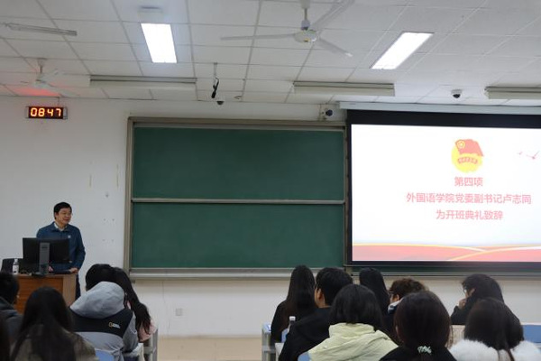 典礼最后,公司党委副书记卢志同致辞。他首先对全体新学员的加入表示热烈欢迎,并明确指出本次团校暨“青马工程”基础培训班的核心目标——帮助青年学子进一步筑牢思想根基、提升综合能力,引导大家成长为“有理想、敢担当、能吃苦、肯奋斗”的新时代马克思主义者与外语专业人才。之后,卢志同申明了培训班的学习纪律与相关安排,强调学员们要做到“真学、真信、真用”。至此,开班典礼圆满落幕。
