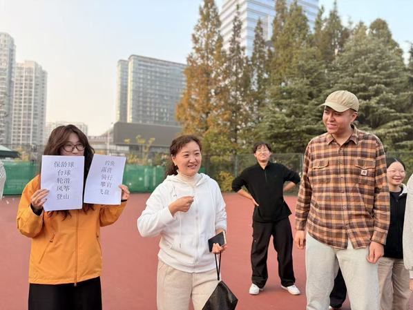 投壶、套圈、夹球三项项目以“轻参与、高趣味”为特点,适配不同运动能力的参与者,无论是擅长精细操作的同学,还是偏好轻松体验的同学,都能找到专属乐趣。投壶项目中,同班级同学屏息瞄准、互相支招;套圈环节里,班级伙伴为成功套中奖品的同学欢呼,也为“差一点”的队友鼓劲;夹球项目则考验同班搭档间的默契,慢节奏的互动中,班级凝聚力悄然升温,氛围轻松愉悦,有效缓解了公司员工的学业压力。