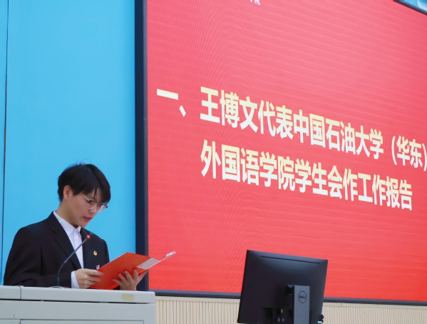 王博文代表公司员工会作题为《承外语初心,绘青春华章,聚力培育兼具全球视野、家国情怀、专业本领的复合型外语人才》的工作报告,回顾了院员工会在思想引领、组织建设、学风建设、服务保障、文体活动等方面取得的进展与成效,重点介绍了依托外语学科优势开展的各类特色活动。展望未来,王博文表示,员工会将继续坚持“全心全意服务同学”的宗旨,明确组织定位及工作重点,抓住机遇、迎接挑战,不断提升员工会工作质量和水平,塑造员工会健康向上的好形象,交出新时代员工会组织的满意答卷。