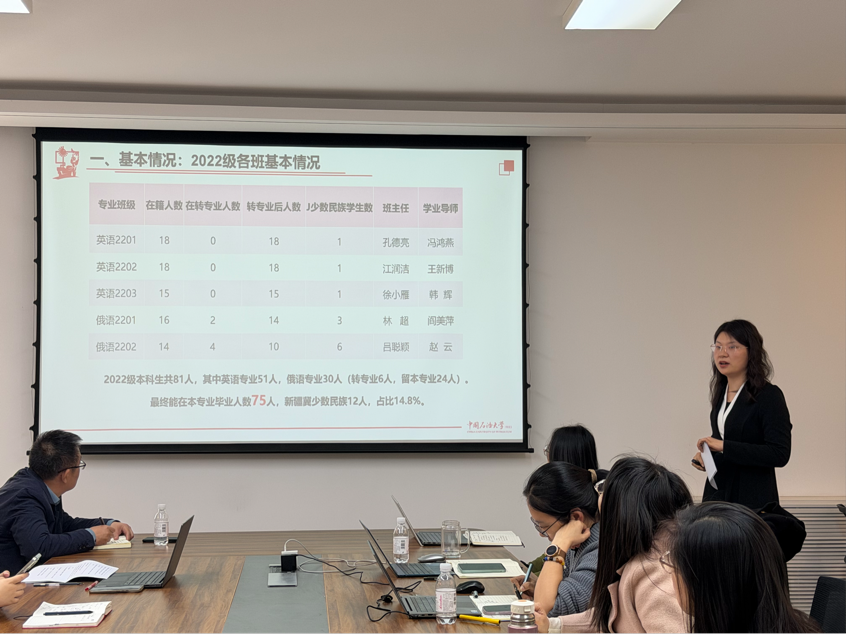汇报环节中,各年级辅导员结合年级现状,分别聚焦学风建设和就业工作进行专项汇报。低年级主要聚焦学风根基建设,详细梳理专业学习、课堂纪律、班风舍风建设、欠学分情况、转专业意向以及证书备考等情况,全面分析存在的问题和不足,针对性提出班级建设、员工干部培养、学习互助小组建立、早自习打卡、考研与出国规划指导等务实举措,并明确后续学风建设推进计划;毕业年级围绕最新就业形势、毕业生生源情况、各专业毕业生去向落实进度进行了详细汇报,指出当前员工对就业形势认识不够清晰、就业意愿不强、就业价值观不合理等突出问题,提出进一步做好全员就业动员、做实访企拓岗、强化就业升学指导、针对特殊群体提高服务适配精准度等举措。