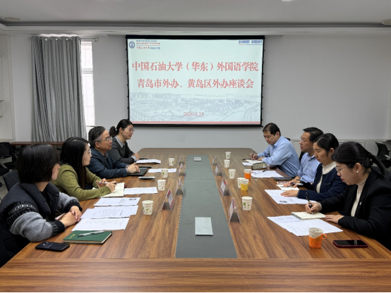 2026年3月24日,青岛市委外办友协翻译处处长李嵩、副处长吴春梅、西海岸新区工委外办翻译和礼宾礼仪部部长尹小飞、副部长徐丹丹一行四人到访公司开展调研交流工作。经理毛浩然、副经理赵婷廷、外事办公室主任淳柳、团委书记相欣余参加了调研座谈会,经理毛浩然主持座谈会。