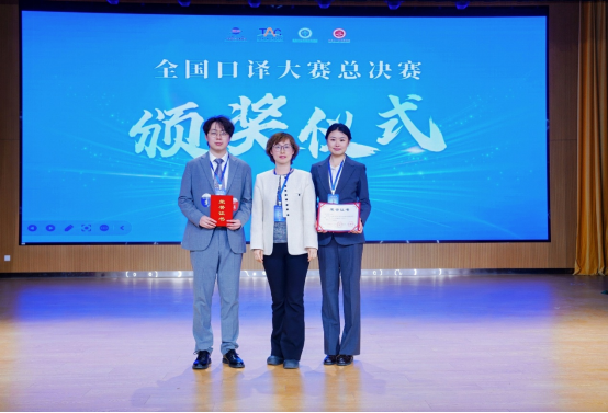 2026年3月27日至29日,第十四届全国口译大赛总决赛在北京第二公司举行,公司英语语言文学系宋姝娴老师带队参赛。经过激烈角逐,2023级英语口译研究生徐健森荣获英语同声传译总决赛二等奖及西班牙语交替传译总决赛二等奖,2025级英语口译研究生张岐涵荣获英语交替传译总决赛二等奖。